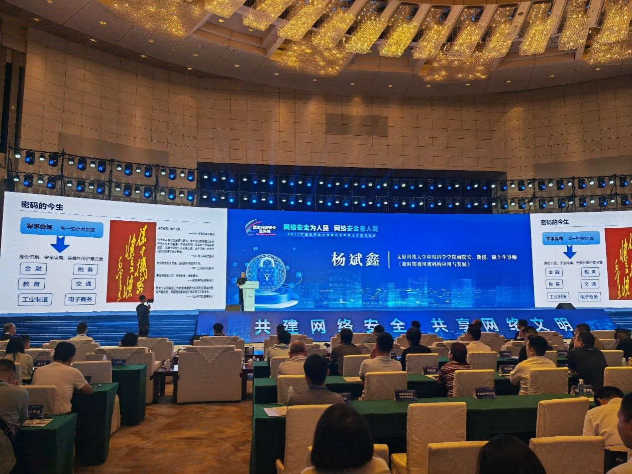 2023年国家网络安全宣传周将于9月11日至17日在全国范围内统一开展。由中共太原市委网信办举办的2023年国家网络安全宣传周太原活动启动仪式9月11日上午在晋阳湖国际会议中心举行,省委常委、市委书记韦韬作出批示,市委常委、宣传部部长、市委网信委副主任程永平等领导出席启动仪式。学院副院长、校企共建数据安全、密码安全实验室校方负责人杨斌鑫教授受邀在启动仪式上做《新时期商用密码的应用与发展》的主旨演讲。