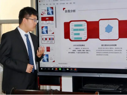 大赛分“成长赛道”和“就业赛道”两个赛道,比赛按照选手标号顺序进行,每个选手有7分钟的自我阐述时间。比赛过程精彩纷呈,10名参赛选手们结合自身专业特点和兴趣爱好,通过精彩的PPT展示和演讲,从自身成长经历、职业分析、评估与调整等多个方面诠释着自己对未来的憧憬和规划,并为此设定短期、中期和长期的职业发展目标,制定相应的行动计划。