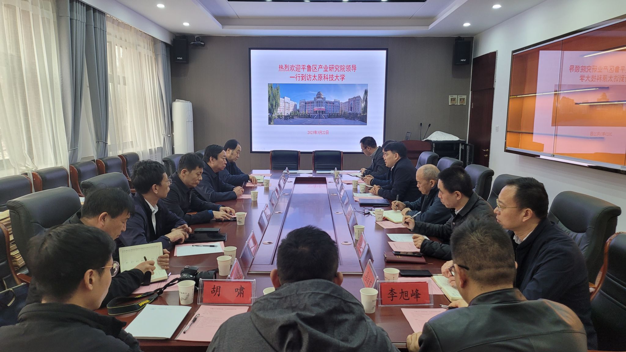 为全面落实产学研融合,深入推进校企合作,助推高质量转型发展,3月22日上午,由朔州市平鲁区政府党组成员马润平副区长带队,携平鲁区产业技术研究院张元胜院长一行赴我校开展调研。会议在科学技术研究院召开,我校副校长马立峰、重型机械装备省部共建协同创新中心总工程师张其生、太阳集团城娱8722院长林金保、产教融合中心主任刘光明、科学技术研究院副院长李晋红、机械工程学院副院长马立东等出席参加。
