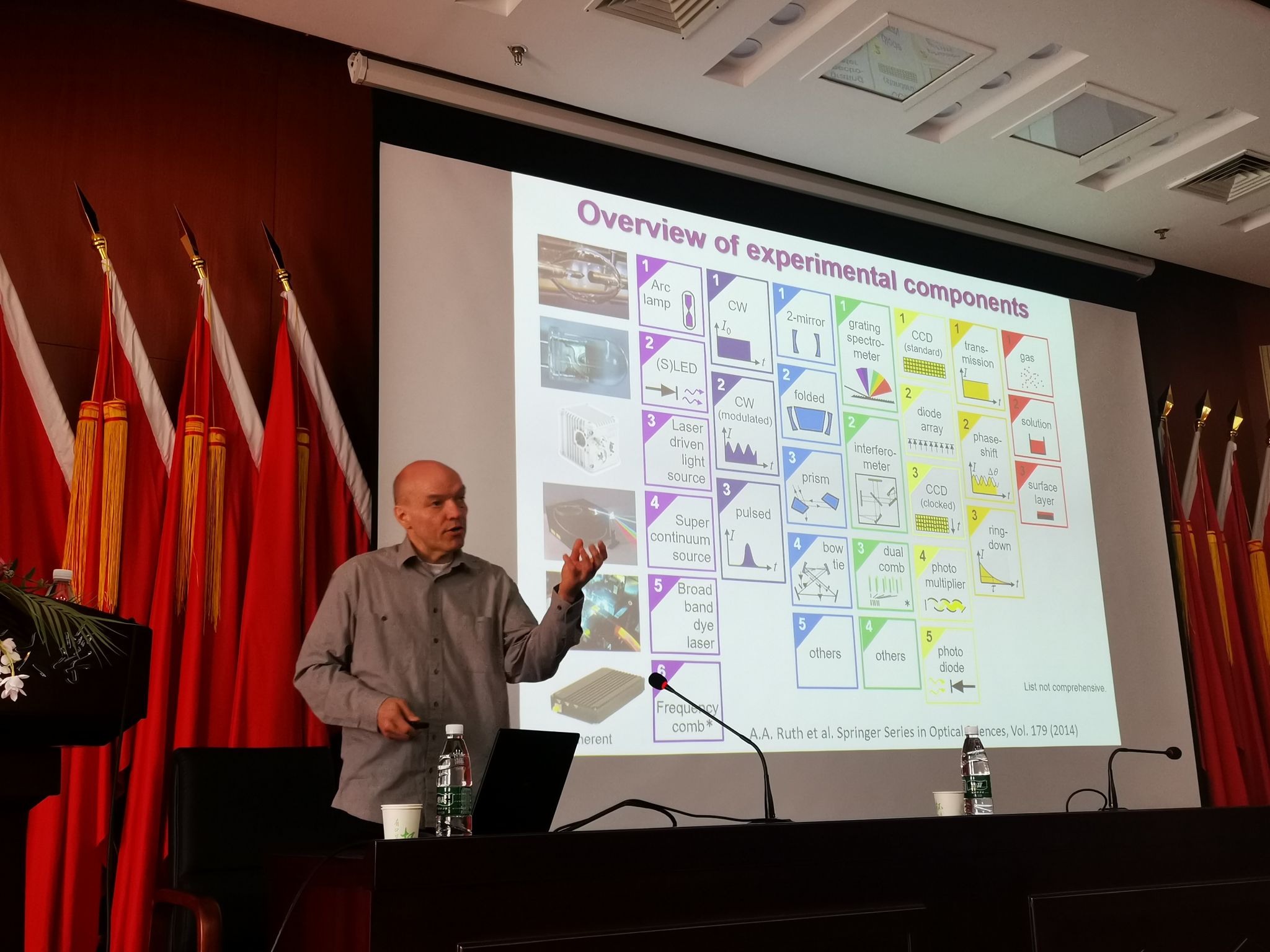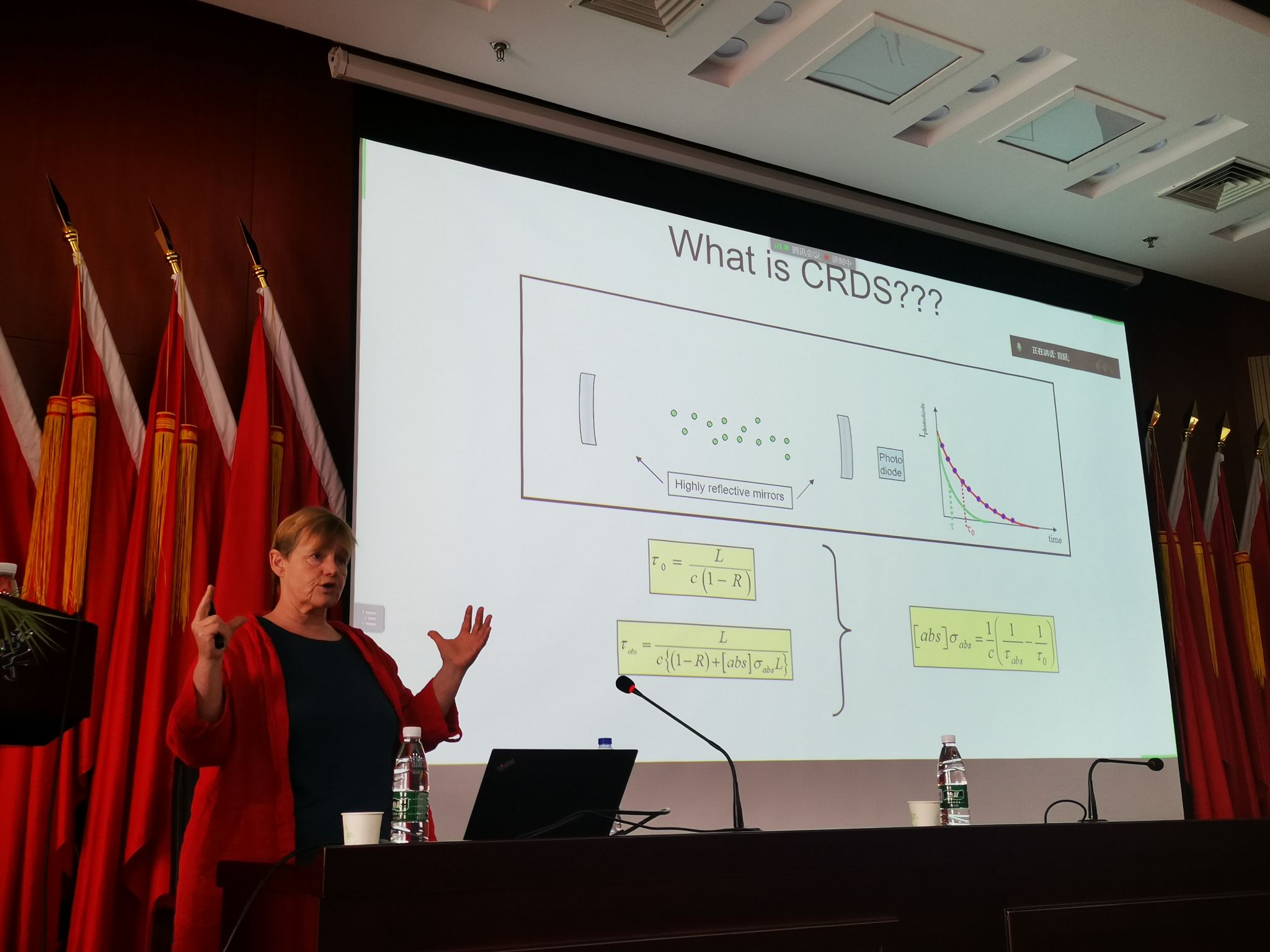 Ruth教授是宽带腔增强技术创始人,是科克大学物理系激光光谱团队创始人和负责人,从事与气相、液相和固相化合物的激光光谱和光物理的研究。其报告题目为《Incoherent Broadband Cavity-Enhanced absorption Spectroscopy: Applications in Atmospheric Simulation Chambers》。报告以非相干宽带腔增强吸收光谱在大气模拟室中的应用展开,介绍了非相干宽带腔增强吸收光谱(IBBCEAS)在真实大气条件下的大气模拟室中原位检测大气痕量气体和自由基(NO3NO2O3H2O)的应用。