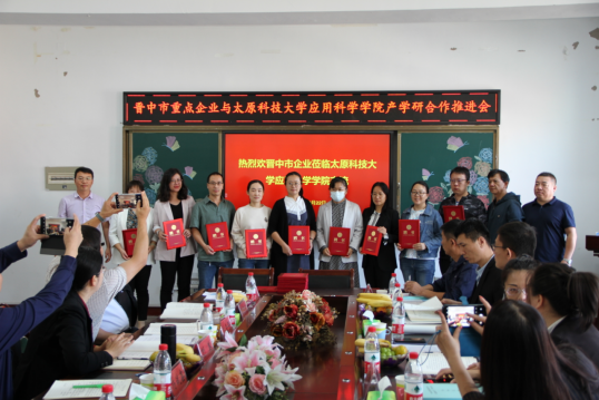 为全面落实产学研融合,深入推进校企合作,助推高质量转型发展,9月22日上午,晋中市转型综改促进中心副主任刘斌带队,携晋中市晋能光伏技术有限责任公司、山西辉能科技有限公司等13家重点企业赴我校隆重举行了产学研合作推进会。会议在学院701会议室举行,太阳集团城娱8722领导班子成员、学院相关老师和电子学院部分教师参加。
