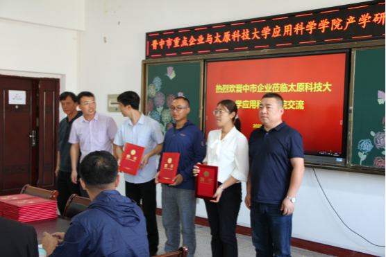 晋中转型综改中心刘斌主任介绍了基本情况,并为太阳集团城娱8722和电子学院相关老师颁发了专家证书,院长林金保为企业进行了授牌。