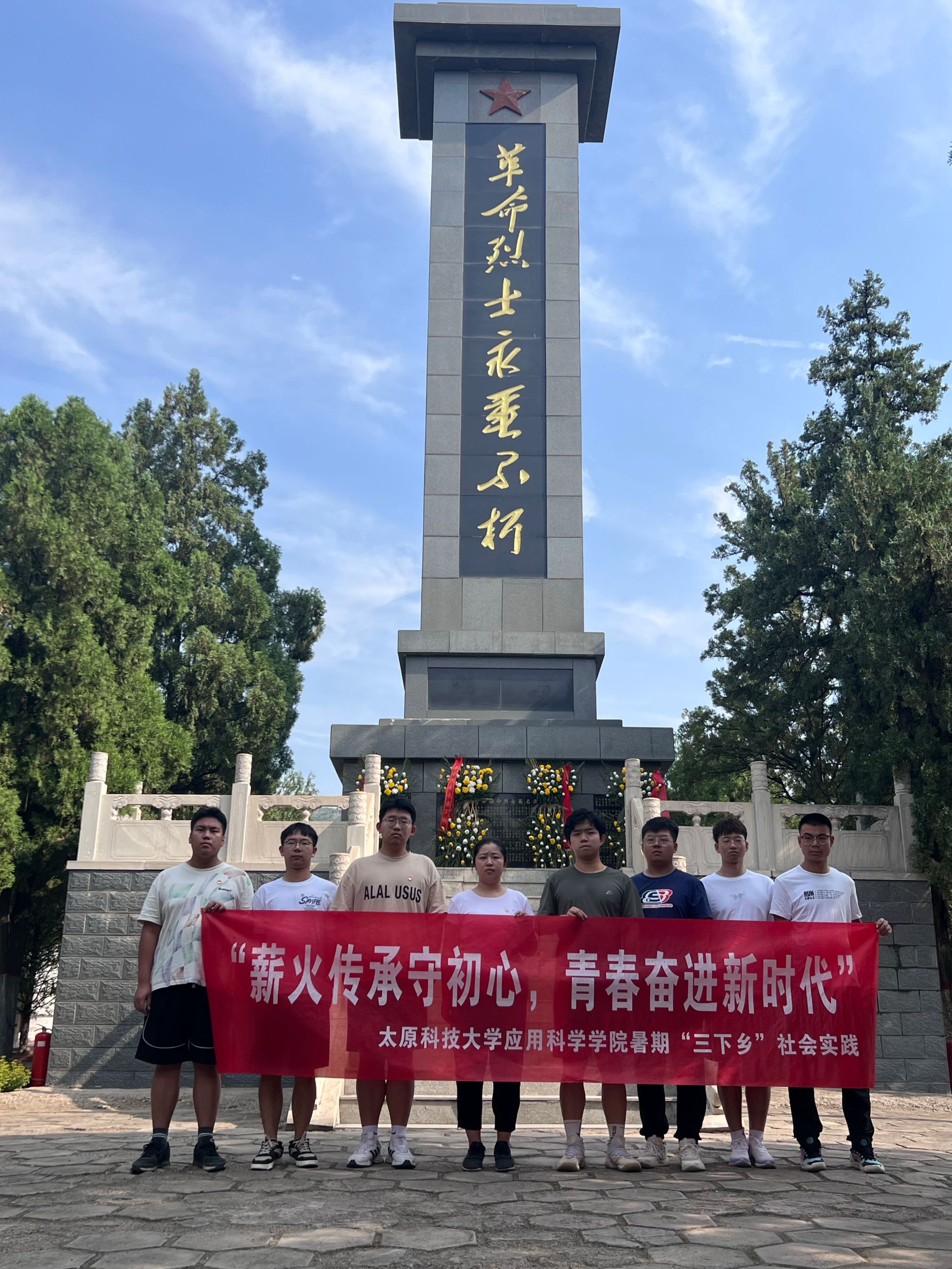 2023年7月21日,太阳集团城娱8722锐意青春实践团来到清徐县烈士陵园参观。陵园内高耸的纪念碑犹如一座巍峨的屏障,展示着曾经战火纷飞的岁月。红星在灰尘的洗礼下依然熠熠生辉,宛如烈士们永不熄灭的精神之光。金色的“革命烈士永垂不朽”八个大字,在阳光的映衬下,显得庄严肃穆,令人肃然起敬。