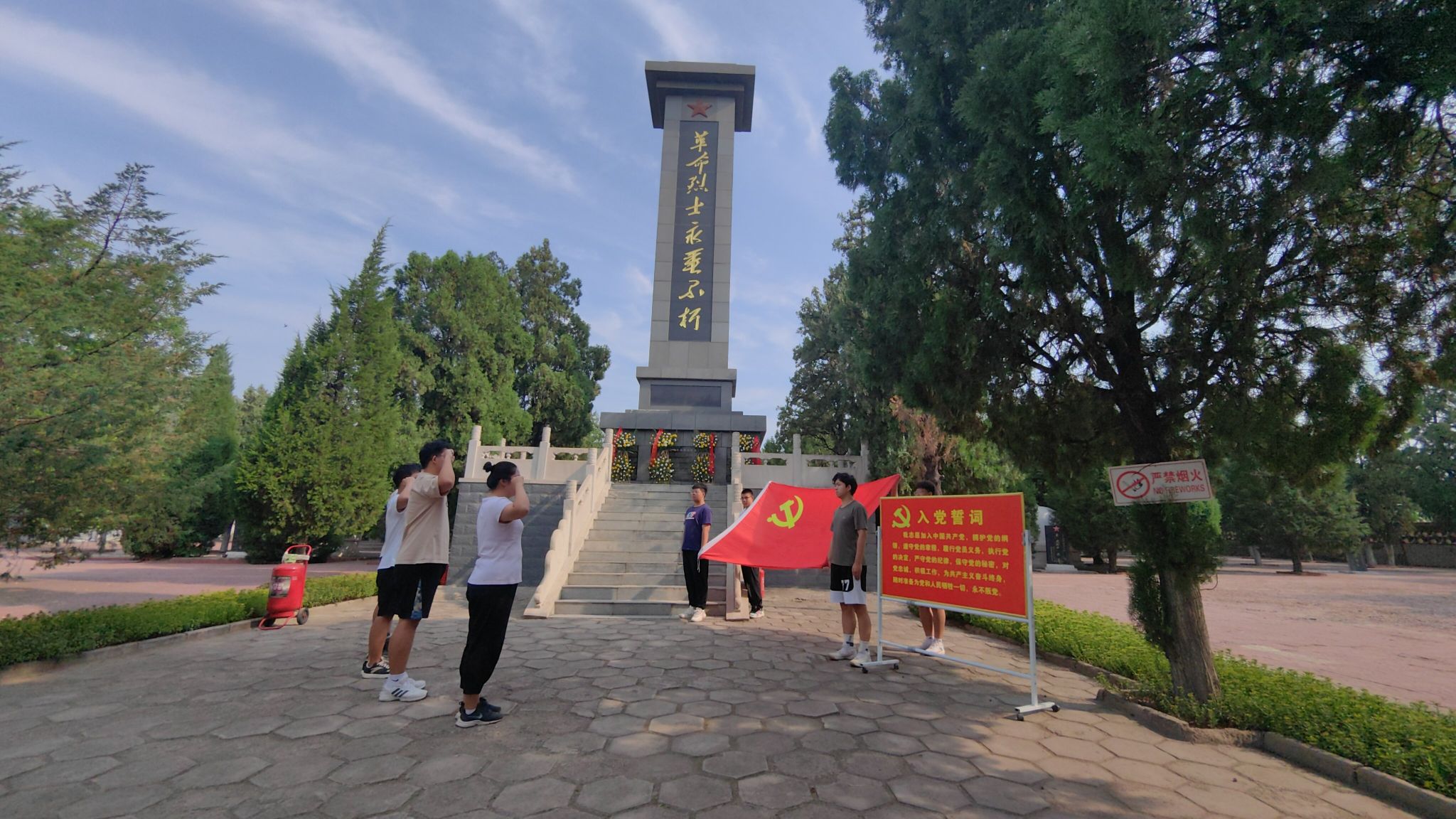 回首那段血雨腥风的岁月,我们不禁怀念那些为了民族解放事业、国家和平统一而英勇献身的优秀中华儿女。他们不畏艰险,甘愿冒着生命的危险,毅然投身革命,舍生忘死,将自己的身躯融入民族的伟大事业中。他们用宝贵的青春和热血,谱写了一曲曲可歌可泣的壮丽诗篇,用崇高的理想和浩然的正气,勾勒出雄浑辉煌的画卷。为了缅怀先烈,永远牢记作为一名共产党员的职责和使命,指导老师杜晓芬带领实践团党员们重温入党誓词,永远铭记自己在党旗下的庄严承诺。
