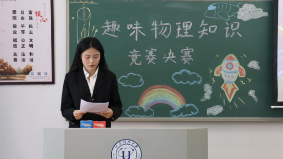 为激发大学生对物理学的热爱和兴趣,同时提高他们在物理学习中的积极性和主动性。2024年5月18日,数理文化节趣味物理知识竞赛决赛在新校区A楼教室盛大举行。本次活动共设置了单选题,多选题,判断题,抢答题四个环节,内容丰富多样,吸引了众多物理爱好者的积极参与。竞赛题目设计巧妙,既有传统的物理基础知识考查,也包含创意性和趣味性的物理实验设计题。