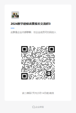 9.所有报名同学加入企业微信群:2024数学建模省赛报名交流群1(群2、群3)。相关通知、培训资料将在群里发布。