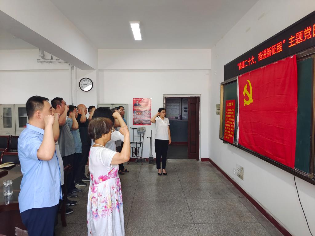 接下来,在彭书记的带领下,全体参会党员代表面向鲜红党旗,紧握右拳,庄严宣誓,重温入党誓词。铿锵有力、神圣豪迈的誓言声响彻会场,这份庄严政治承诺传达出所有党员为党奋斗终生、献身党的事业的坚定决心。