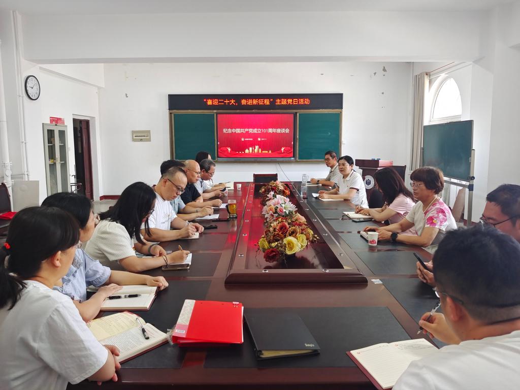 随后,学院党委又组织召开了庆祝中国共产党成立101周年座谈会。会上,彭书记带领大家再次重温了党的光辉历史和伟大成就。各位党员代表则结合个人成长史,就在今后的工作中如何进一步发挥好党组织的战斗堡垒作用和党员的先锋模范作用、如何更好地践行党的群众路线进行了交流发言。