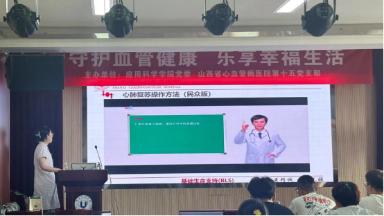 “守护血管健康、乐享幸福生活”主题讲座在行远楼四层报告厅有序开展,授课医生详细解读了心肺复苏的重要性,特别针对心脏骤停等紧急情况下的应对策略进行了深入剖析。同时以通俗易懂的语言讲解了心肺复苏(CPR)的标准操作流程和AED设备的使用方法,包括初步判断、紧急呼救、胸外按压、开放气道、人工呼吸等关键步骤,并强调了按压速率(每分钟100-120次)、按压深度(至少5-6厘米)以及30:2的按压与人工呼吸比例等要点,让学生了解急救的方式,赢得了在场学生的热烈掌声。