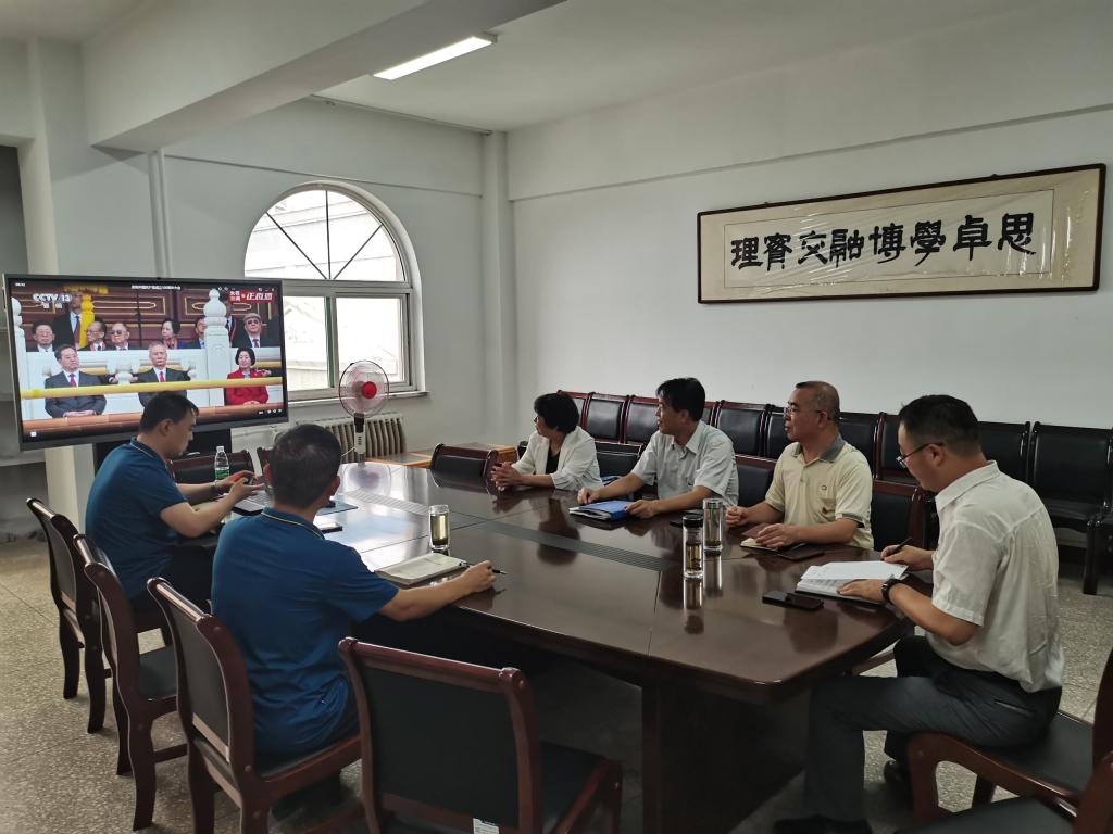 党委理论学习中心组正在收看中国共产党成立100周年大会学习